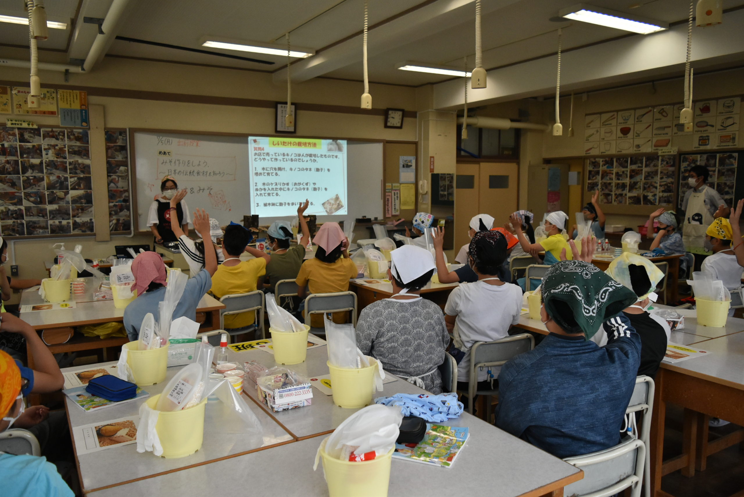 News & Reportお知らせ & イベントレポート 天塩スタジオからのお知らせ カテゴリー ALL 未分類 Event Information Report Report 【7/7は乾しいたけの日】「子供はしいたけが好き!」 7月5日(月)杉並区立杉並第三小学校へ「乾しいたけ」の出張講座に行ってきました。 6年生35名様ほどの家庭科授業で「日本の伝統食材を学ぼう」というテーマ。 「乾しいたけ」 「みそ作り」の2部構成です。 「日本産原木乾しいたけをすすめる会」様に「原木」をたくさんお送りいただきました。「しいたけ」が好きなお子様が半数以上!「子供はしいたけが苦手」というのは迷信!だったんですね! 授業終了後にはたくさんの質問をいただきました。 貴重な経験をさせていただきありがとうございました。 前のページ 次のページ