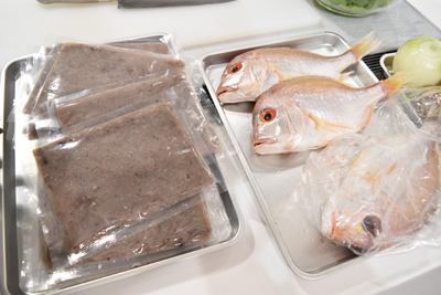 そして10月最後は、28日・島根県渡邊水産さんの干物を使った料理教室でした。この立派な鯛!!左側のはキスミンチです。いつも元気で朗らかな渡邊さん^^今回もとっても美味しい料理を教えてくださいました。
